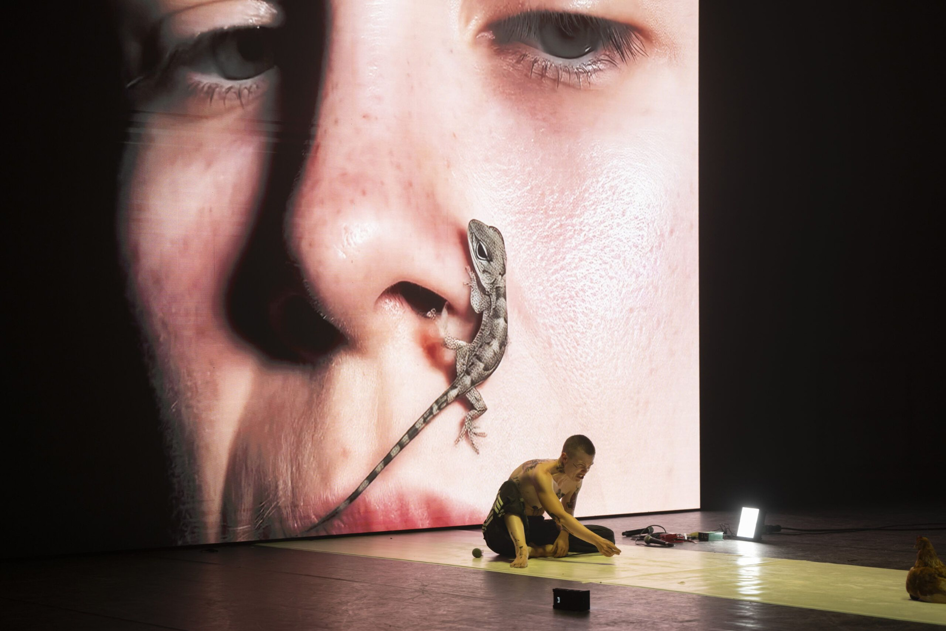 Crediti – "iGirl" di Marina Carr, traduzione di Monica Capuani e Valentina Rapetti, performer e regia Federica Rosellini, video Rä di Martino, musica originale Daniela Pes, sound designer G.U.P. Alcaro, disegni tatuaggi e costumi Simona D'Amico, scenografia Paola Villani, light designer Simona Gallo, dramaturg Monica Capuani, aiuto regia Elvira Beraducci, assistente alla regia Barbara Mazzi. Coproduzione TPE – Teatro Piemonte Europa, Teatro Stabile Bolzano, Elsinor – Centro di Produzione Teatrale, sostegno e debutto nazionale Romaeuropa Festival, in collaborazione con Festival delle Colline Torinesi, diritti di rappresentazione a cura di THE AGENCY (London) LTD. Si segnala che è presente nudo in scena. Lo spettacolo ha volumi alti, su richiesta verranno forniti tappi per le orecchie. La foto che pubblichiamo a corredo di questo nostro articolo è di Andrea Macchia.